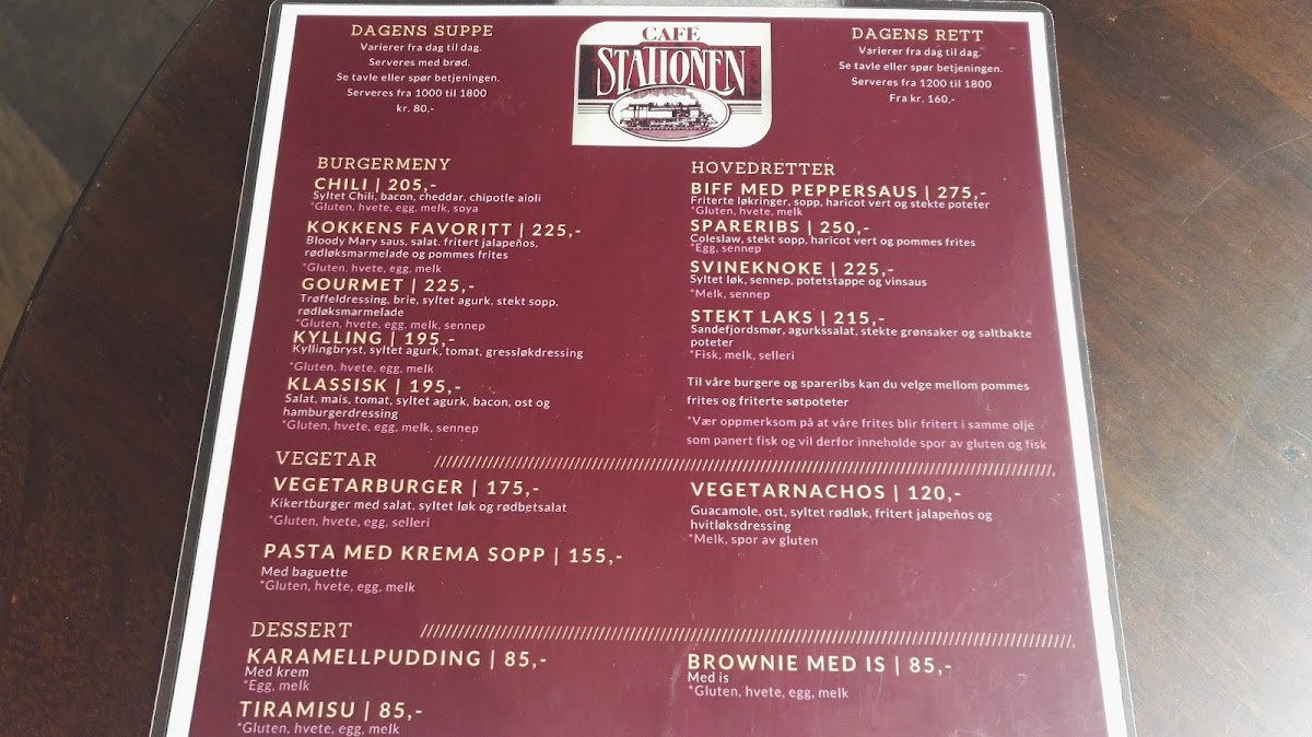 Cafè Stationen at Uttrågata 1 in Vossevangen offers a menu that perfectly balances classic comfort foods with thoughtful local touches. The highlight, Stasjonsburger Med Pommes Frites, stands out with its juicy, well-seasoned patty and crisp, golden fries, embodying the café’s focus on quality and simplicity. Beyond the burger, the menu features a range of hearty sandwiches, fresh salads, and warming soups, each prepared with attention to flavor and presentation. Light bites and pastries complement the main dishes, catering to those seeking a quicker snack or a sweet finish. Prices are reasonable, reflecting both the generous portions and the cozy, welcoming atmosphere of the café. Overall, Cafè Stationen’s menu succeeds in offering a satisfying, versatile selection that appeals to both locals and travelers looking for a reliably tasty meal in Vossevangen.